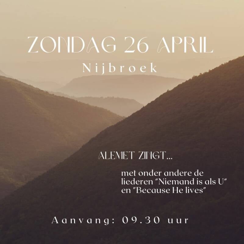Zondag 17 november zingt Alemet in de dorpskerk in Nijbroek. Het thema van de dienst is ' Zingend geloven'. Ben je erbij?